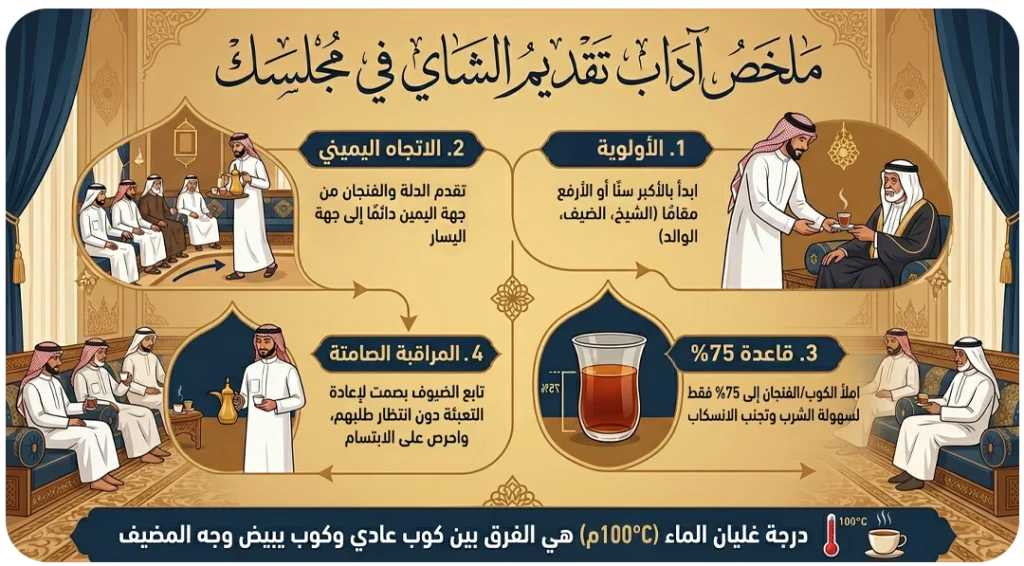ترتيب التقديم: ما هي الطريقة الصحيحة لتقديم الشاي في المجلس؟