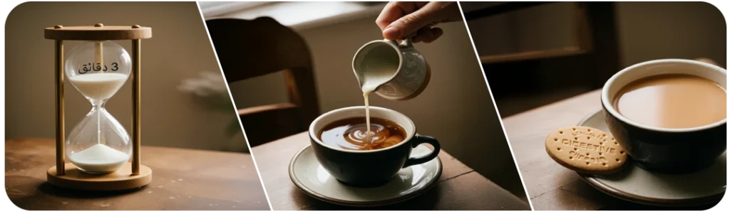 • إضافة الحليب: يعمل الحليب كعنصر تلطيف طبيعي، حيث يرتبط بمركبات الشاي ويقلل من حدتها على جدار المعدة. إضافة قليل من الحليب للشاي الأسود صباحًا يجعله أكثر نعومة ويمنح شعورًا بالشبع.