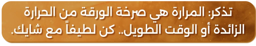 ·       الشاي الأخضر: أوراقه رقيقة ولم تتعرض للأكسدة، مما يجعلها تحتفظ بالسكريات الطبيعية. صب الماء المغلي (100°C) عليها يشبه حرق زهرة بالنار والنتيجة ستكون طعمًا مرًا وقابضًا، الدرجة المثالية هي (70°C – °C 80) ببساطة، اترك الغلاية ترتاح لمدة 5 دقائق بعد الغليان قبل صب الماء على الشاي الأخضر.